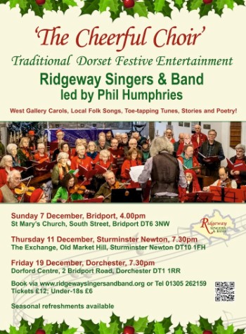 Christmas is coming and once again the Ridgeway Singers & Band are preparing to bring their popular seasonal celebration to three locations around Dorset, with local songs, carols, toe-tapping tunes, stories and poetry – including some contributions from Cornwall this time.